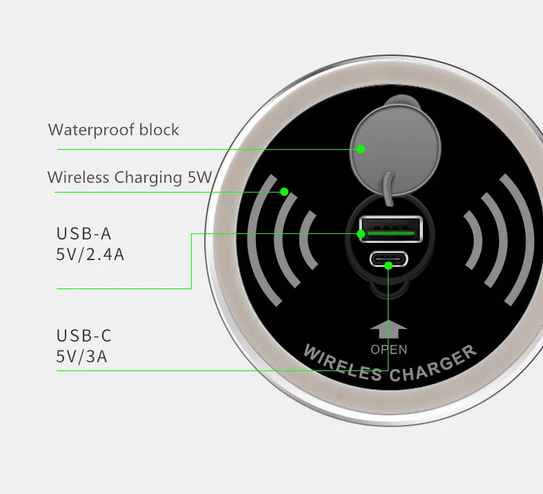4. Output: USB-A 5V/2.4A; USB-C 5V/3A